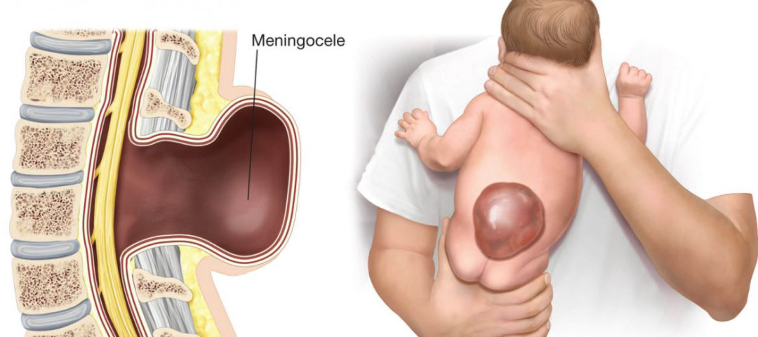 El mielomeningocele es un defecto del tubo neural en el cual los huesos de la columna no se forman totalmente. Esto provoca un conducto raquídeo incompleto. La médula espinal y las meninges sobresalen de la espalda del niño.